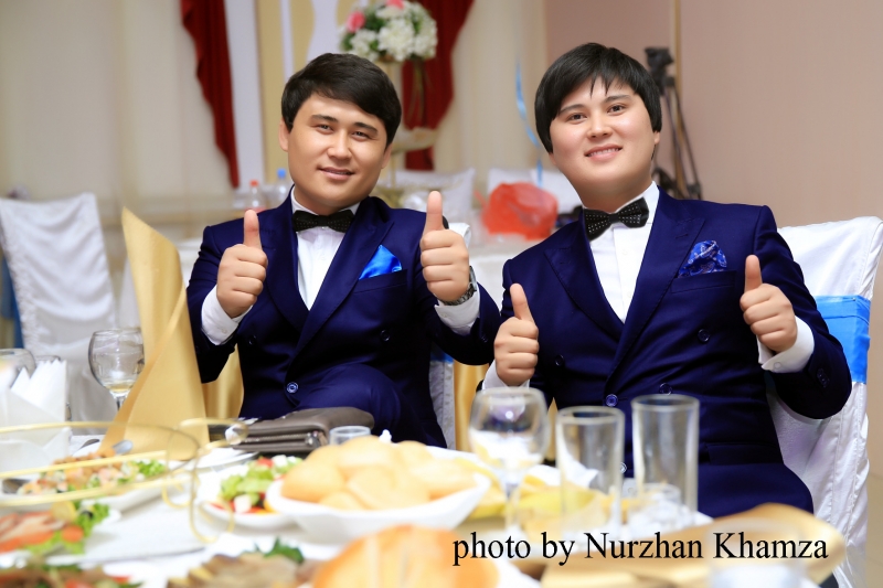 1.Ведущие Бауыржан и Нуржан – братья, которые сделают ваше торжество по-семейному теплым и по-хорошему незабываемым. Эти ведущие сами пишут сценарии. Для них каждое мероприятие – отдельный проект, к которому братья относятся ответственно и креативно. В программу Нуржана и Бауржана включено все, что должно быть на традиционной свадьбе – песни, интерактивные конкурсы, шоу, обряды и атрибуты к ним. Это самый крепкий и слаженный дуэт ведущих, потому что это дуэт братьев. (на казахском и на русском )